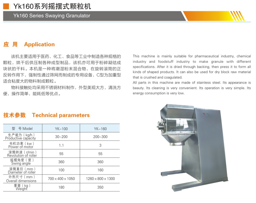 本機適用于制藥、化工、食品、固體飲料等行業的制料,將攪拌好的物料制成所需尺寸的顆粒,或將結塊狀物料打成小顆粒。